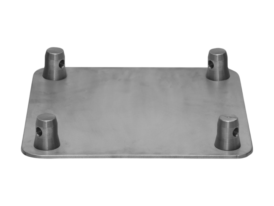 Aluminium male base plate connecting to PT square or box trusses (290 mm / 11.42 in). Connection set included.