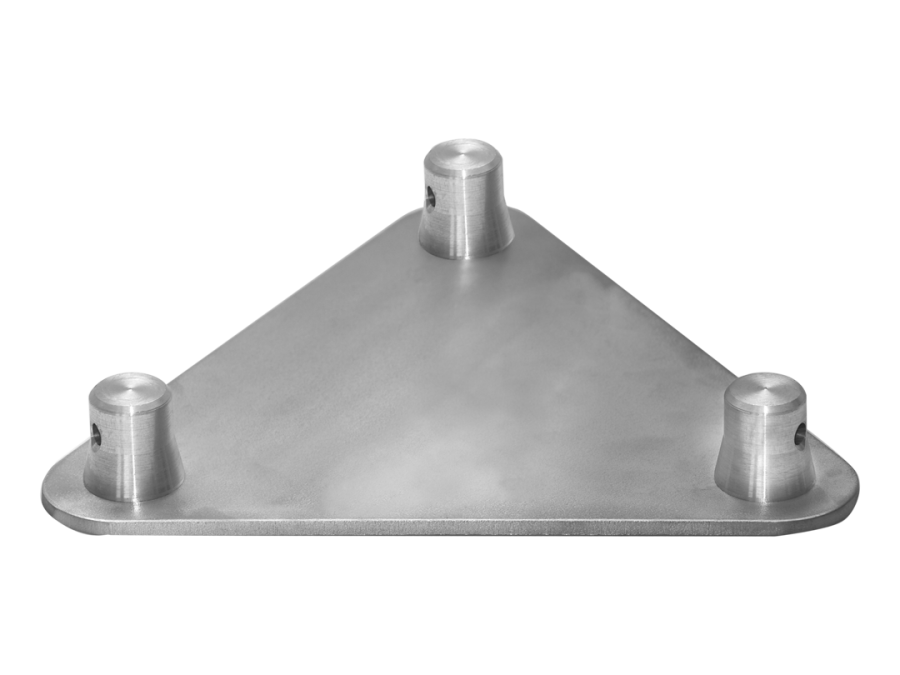Aluminium plate for attachment to the wall with predrilled holes and aluminium male half connectors.