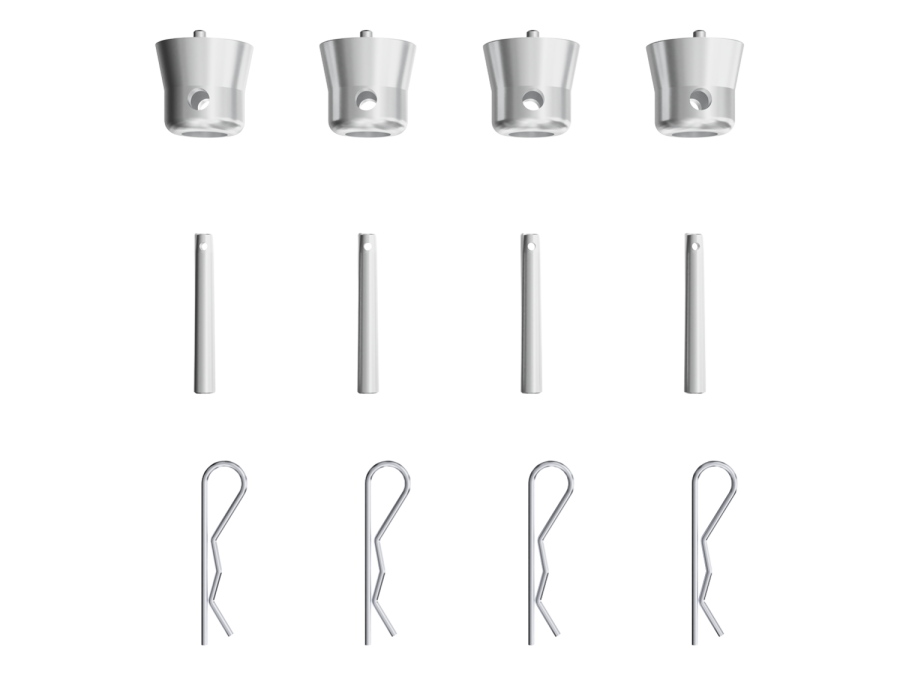 - Set includes 4 x steel half connector (2116), 4 x M8 screw, 4 x safety pin (2150), 4 x safety clip (2152)